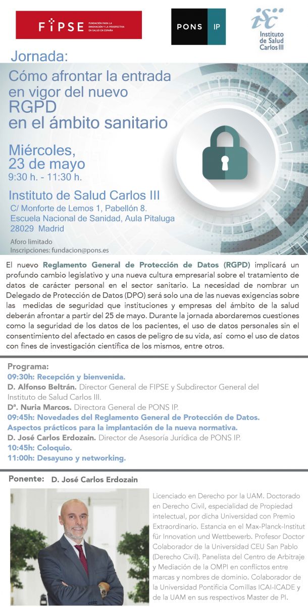 Jornada: Cómo afrontar la entrada en vigor del nuevo RGPD en el ámbito sanitario