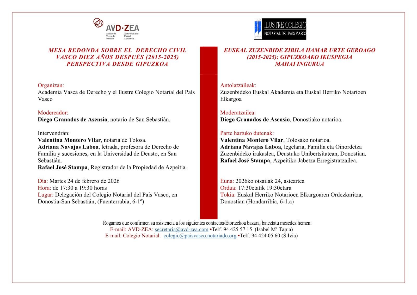 AVD - ZEA Academia Vasca de Derecho Zuzenbidearen Euskal Akademia y el Ilustre Colegio Notarial del País Vasco