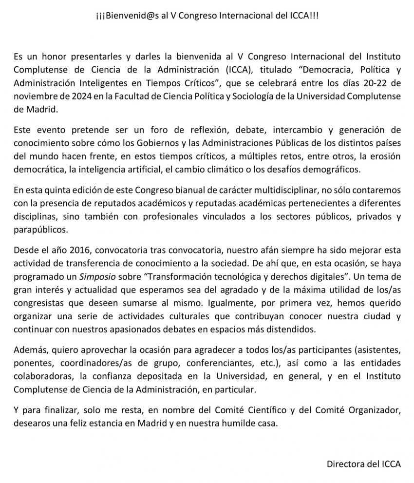 V Congreso Internacionl ICCA: democracia, política y administración inteligentes en tiempos críticos